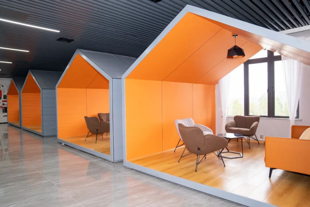 上二楼,这里有园区展厅、人才会客区、企业办公区、生活配套区四个区域。进入园区展厅映入眼帘的是习近平总书记对于产业发展的指导方针和定位要求——“发展是第一要务,人才是第一资源,创新是第一动力”。“新区是一个动力产业之谷、是一座创新创业之城、是一座宜居宜乐之城。展厅里记录了我区历年的大事记和重要成果节点。”产业园讲解员介绍,展厅还展示了高新区的产业基础及园区发展规划,轨道交通、通用航空、新能源汽车三大动力产业特色,以及新区先后获评的“国家自主创新示范区”“长江经济带国家级转型升级示范开发区”“国家创新型特色园区”等国字号招牌。