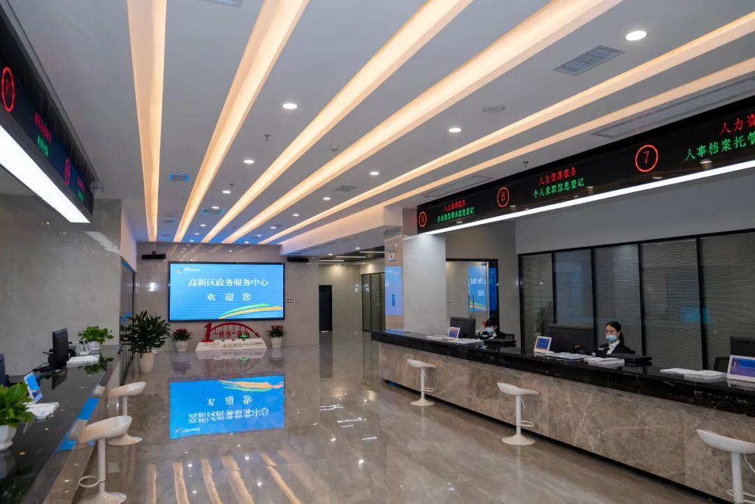 走进产业园大厅,一楼左侧是高新区政务服务中心,分为自助服务区、业务办理区和综合服务区,开设14个业务窗口,进驻事项352项,为园区企业提供“一站式”“零距离”服务,真正实现让企业办事不出园区;而右侧,则是高新区人力资源市场,提供个人求职服务、单位招聘服务、办理录用登记备案手续、档案托管、小额担保贷款等业务。