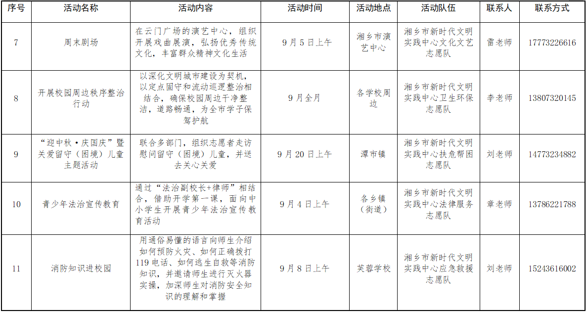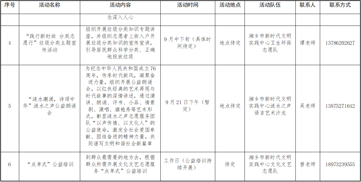 附件:湘乡市新时代文明实践中心活动计划安排表(9月份).docx