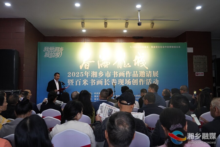 20日,“我爱湘乡我的家·春满龙城—2025年湘乡市书画作品邀请展暨百米书画长卷现场创作活动”在市博物馆举行,50名书画名家现场集体创作,以百米长卷勾勒湘乡历史记忆与时代活力。湖南省人民政府参事、省美协名誉主席朱训德,市人大常委会主任李文亮,市政协主席谢永根出席活动。