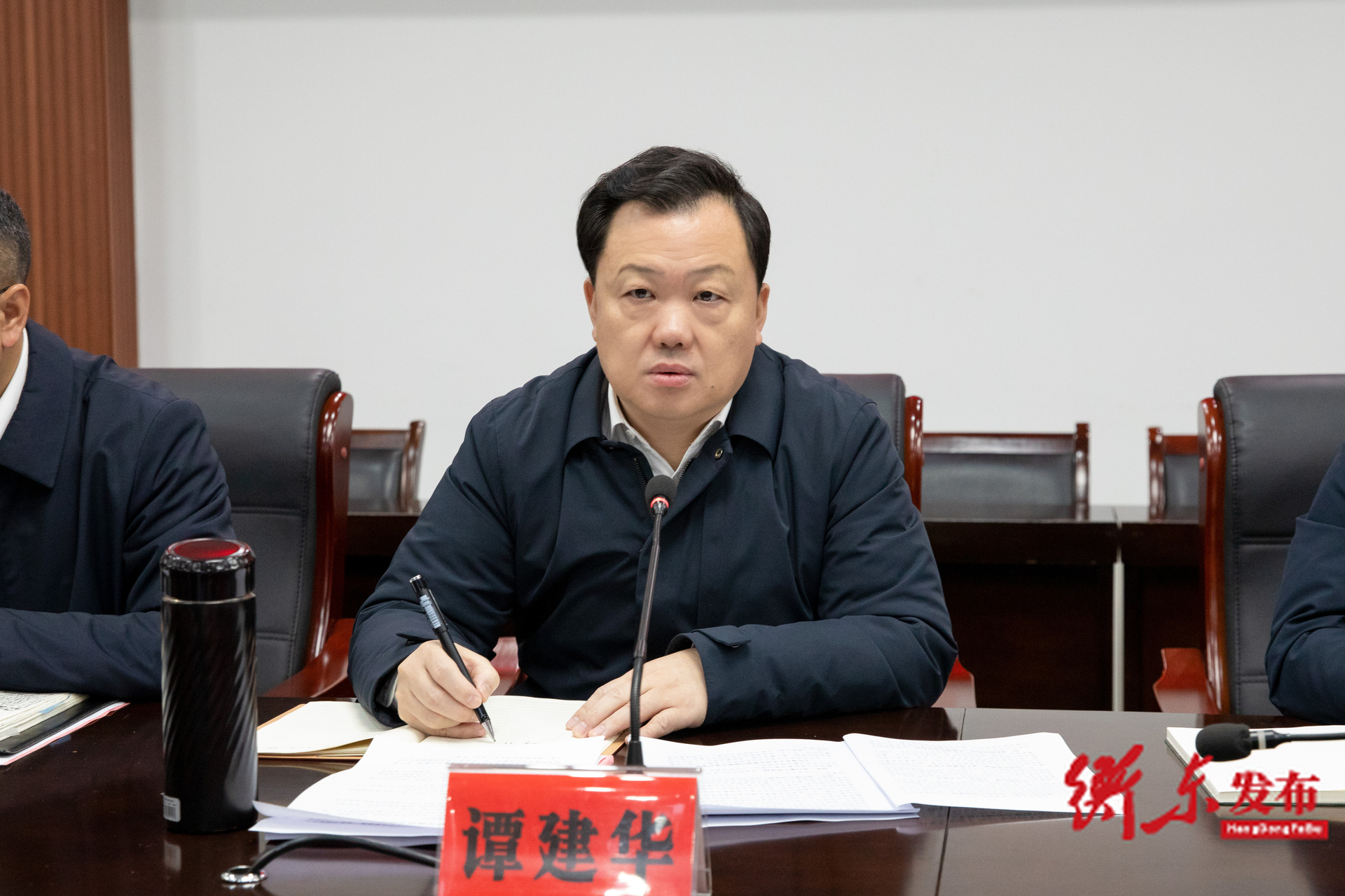图:县委书记谭建华主持会议并作总结讲话