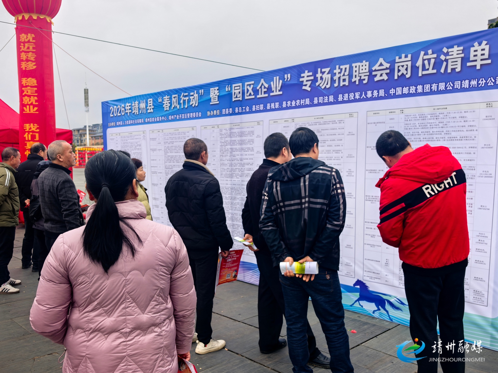 靖州融媒2月25日讯(记者 周悦伊 通讯员 梁佩萱)2月25日,2026年靖州苗族侗族自治县“春风行动”暨“园区企业”专场招聘会在民族广场火热开展。