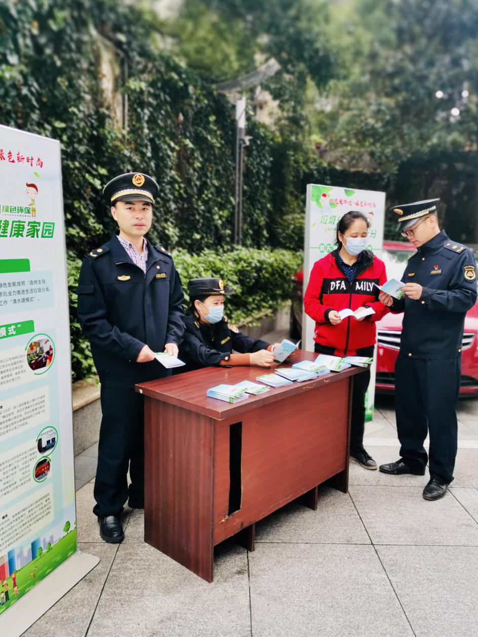 “今天起《长沙市生活垃圾管理条例》正式实施,请大家共同参与垃圾分类,提升分类准确率”,10月1日《条例》实施当天,清水塘街道城管执法中队就在烈士公园南门搭设了宣传台,积极向市民及游客分发垃圾分类指导手册。面对不时前来咨询的市民,执法人员都认真为他们答疑解惑。